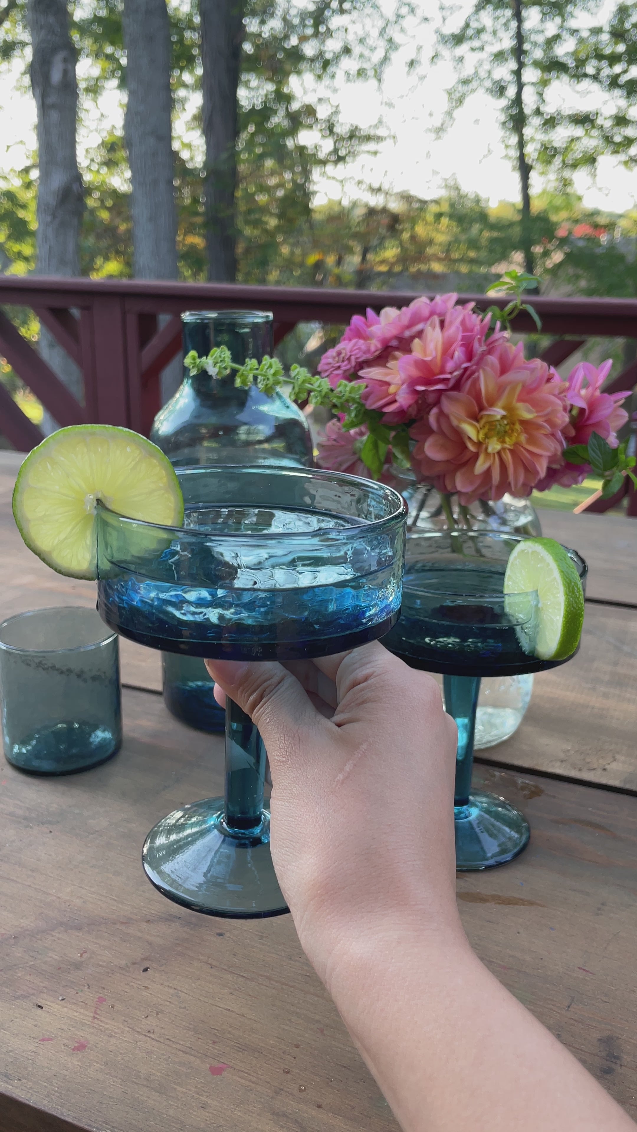 Handblown with a stunning hammered finish, these coupe glasses take your cocktails and mocktails to the next level. Crafted with care at a woman-owned business, each is ethically made from 100% recycled glass and are sold as a set of 2 glasses.
