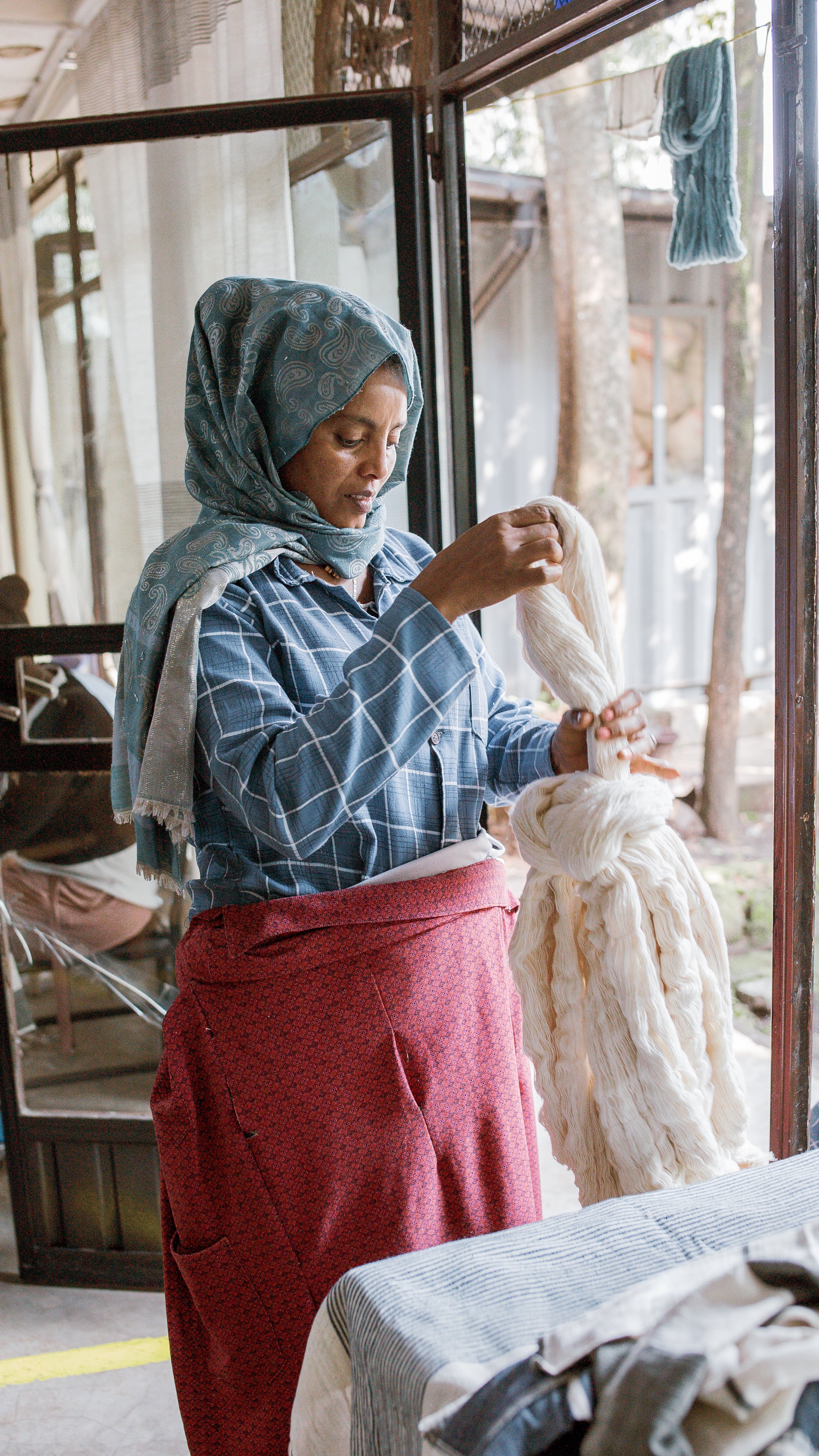 Each fibre is hand-spun in Ethiopia from locally harvested cotton and hand-woven to perfection.